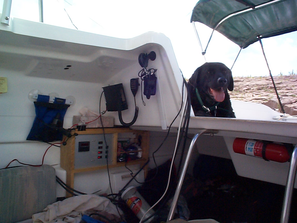 The Yaesu FT-2500M mounted inside the cabin. The electrical panel is also shown.